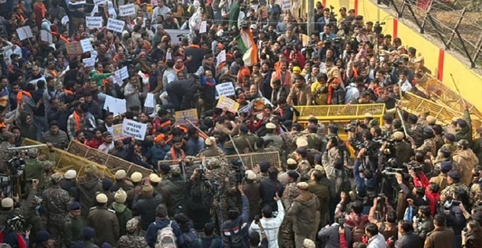 দিল্লিতে বাংলাদেশ হাইকমিশনের সামনে সংঘর্ষ, ২ ব্যারিকেড ভাঙলো বিক্ষোভকারীরা